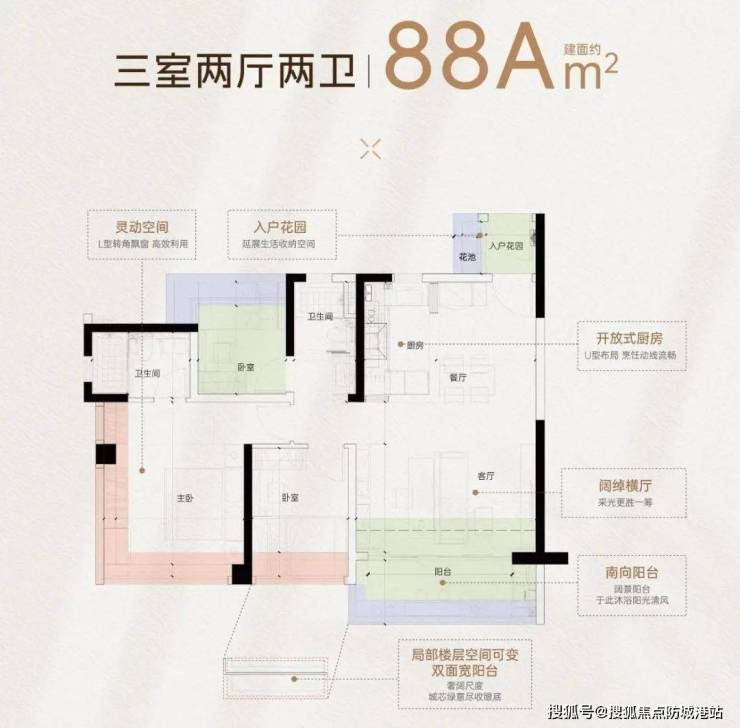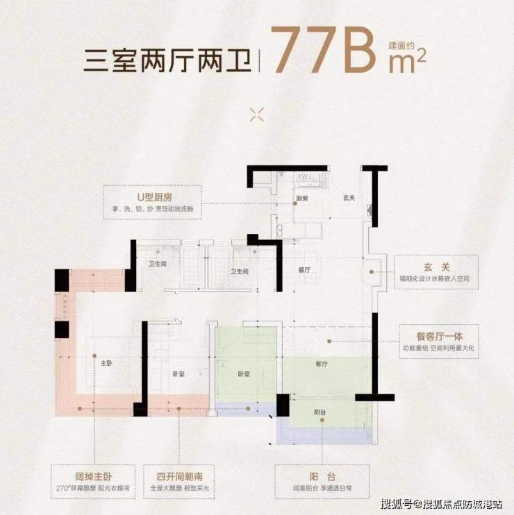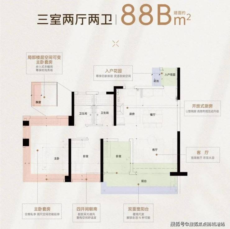 88㎡B户型:7米超长阳台+12㎡餐厨一体化,满足家庭欢聚场景