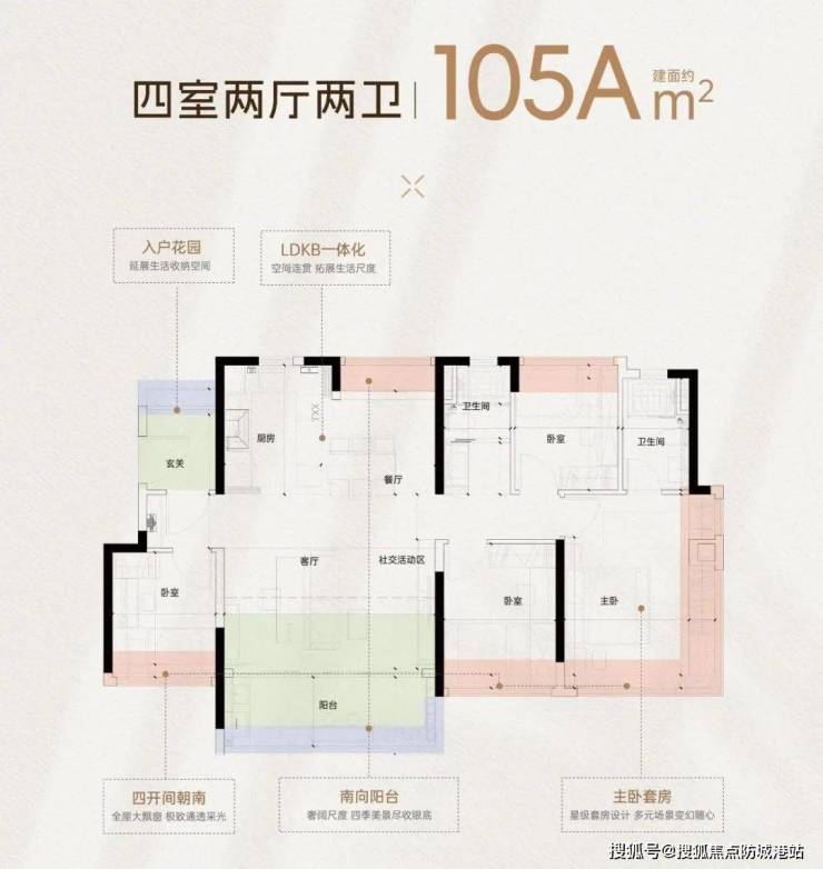105㎡A户型:南北对流大方厅,客厅面积可扩至23㎡,三代同堂无忧