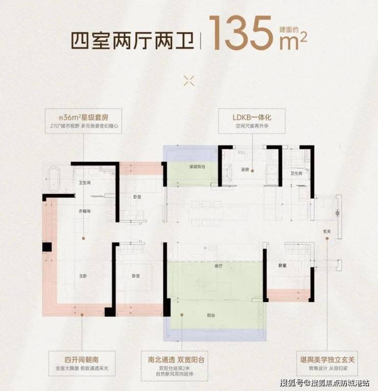 135㎡户型:南北对流双阳台,三代同堂无忧