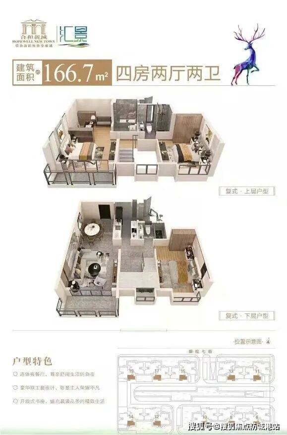 :复式结构空间层次感丰富,动静分区明显,可打造个性化居住空间,满足对高品质生活有追求的改善型购房者。