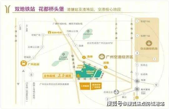 :地处花都空港经济核心,位于花都出入市区要道,占据无可取代的黄金地段。交通极为便捷,正门距地铁 9 号线清塘站仅 200 米,侧门距清㘵站仅 300 米,1 站可换乘 3 号线,2 站到白云机场,7 站逛天河,40 分钟通达全城。未来规划中,地铁 18 号线、24 号线、36 号线将交汇于邻近项目雅瑶路侧门的雅瑶站,届时将拥有 4 条地铁线路。此外,周边公交线路众多,还有穿梭巴士,自驾通过机场高速、广清高速等也能便捷抵达。