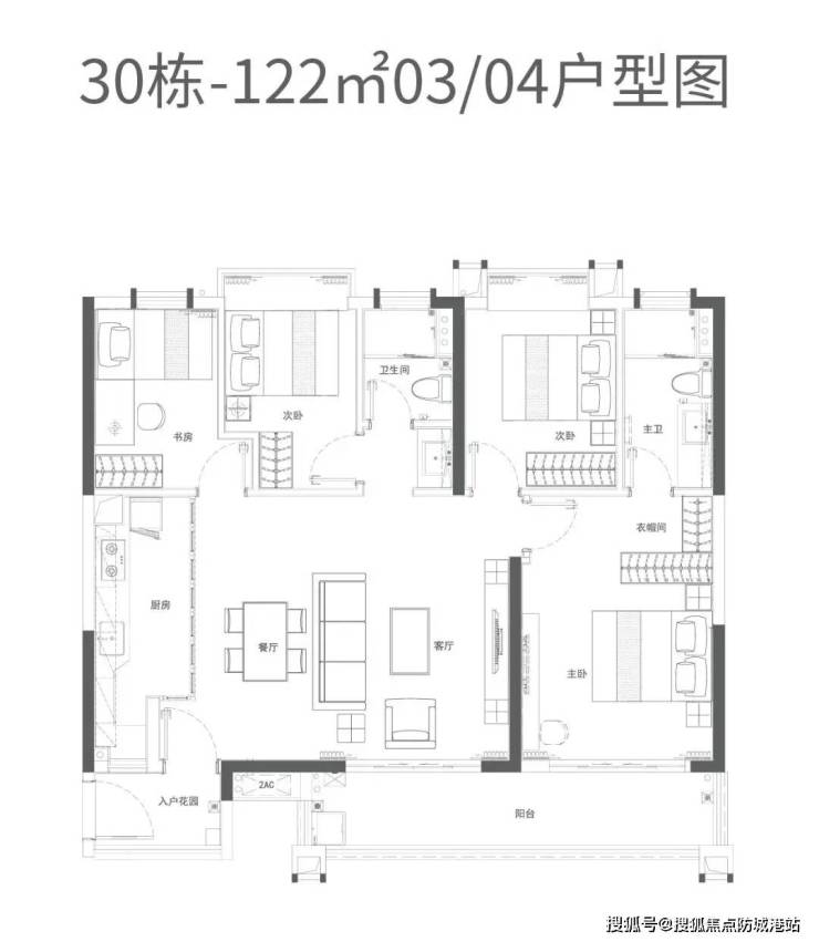 建面约122㎡南向带主套舒适大四房:南北通透,主卧带独立卫生间,适合大家庭。