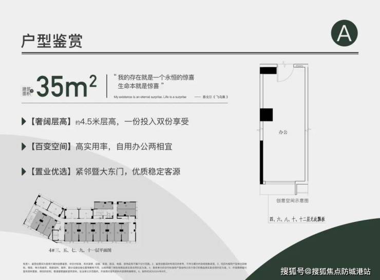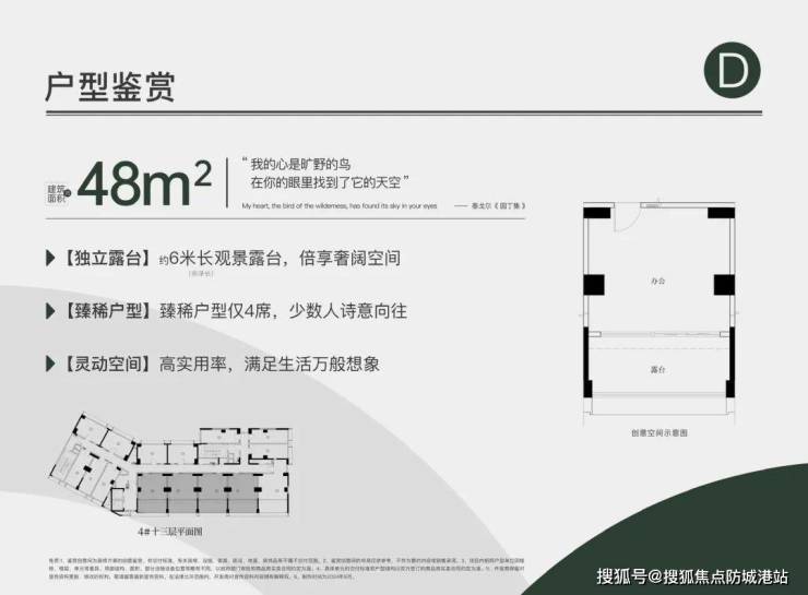 住宅部分户型面积约为110-175㎡四房单位,而商办公寓则提供了35-61㎡的复式户型。特别值得一提的是飞鸟集公寓,其主打4.5米层高的复式设计,户型包括35㎡、46㎡、48㎡和61㎡,其中35㎡分为A、B两种户型(双钥匙设计和Loft中空复式),46㎡为单户设计,且部分户型可享有中央公园景观。大面积特殊户型如48㎡和61㎡仅限顶楼有售,并带有露台设计,提供一线中央公园景观,但价格相对较高。公寓产品总价从68万起,月租金可达3600元/月。