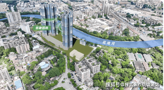 不同于白鹅潭核心区的高密度开发,本项目紧邻市政公园,对面是花地河。