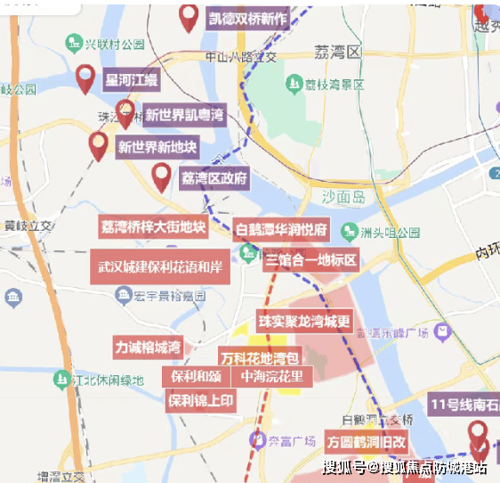 项目位于荔湾区芳村大道东,虽然不直接临江,但与白鹅潭CBD核心区仅一脉相承。根据《广州市国土空间总体规划(2021-2035)》,白鹅潭被定位为广州五大世界级商圈之首。保利花语和岸作为白鹅潭的“后花园”,将直接承接白鹅潭外溢的高端居住需求。