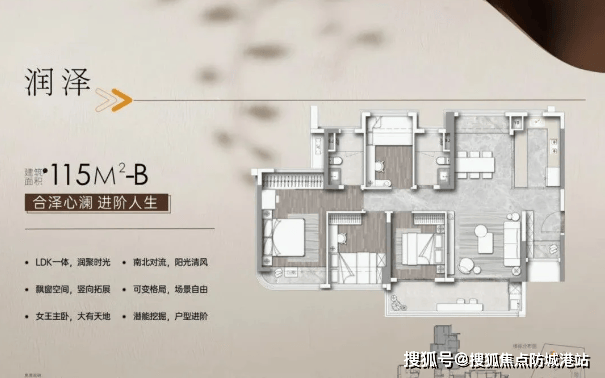 115平方米:提供A、B两种户型选择,总价区间在590至640万元之间。