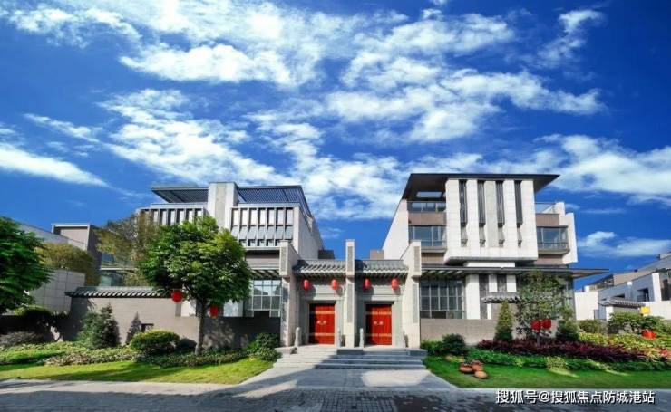 把宅院大门、花格窗、青石雕刻等传统的岭南元素与现代建筑、自然环境完美融合,打造中国特色的岭南院墅。