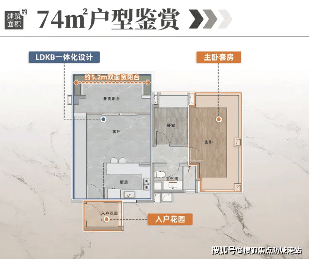 建面约74㎡三房一卫:使用率近120%,同面积段罕见三房格局,总价约370万起,适合首置刚需;