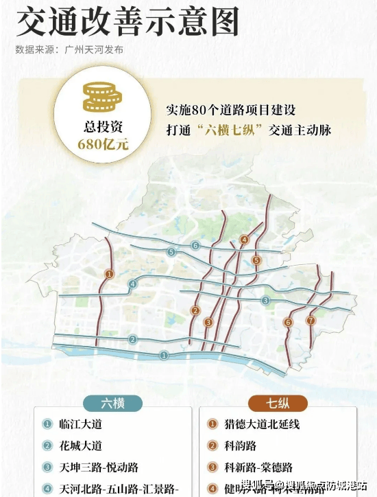 项目地处天河世界大观板块,紧邻奥体中心(2025 年十五届全运会主会场),承接全运会带来的基建与产业红利 —— 广东奥体中心已完成 10 亿升级改造,赛后将开放全民健身平台与体育公园,同时板块依托总投资 680 亿元的 80 个道路项目,打造 “六横七纵” 交通主动脉,区域城市界面与配套将持续升级。