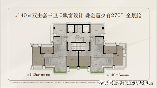 125㎡四房:主卧270°转角飘窗,客厅开间4.5米,媲美140㎡竞品;