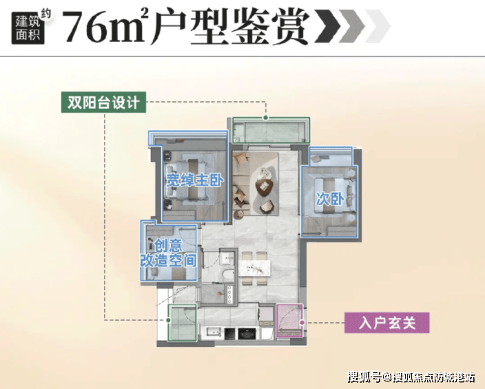 (一)76㎡三房一卫:刚需热门款,总价296万起,年轻人的“上车首选”