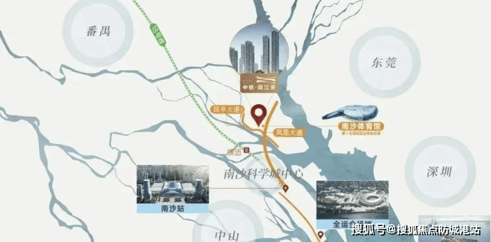 4. **地铁线路在周边形成网络,轻松穿梭湾区各处**:中铁阅江来虽未直接临地铁站,但依托主干道交通网络实现了与湾区的高效连接。项目位于凤凰大道与凤亭大道之上,这两条主干道是南沙交通的“黄金脉络”,可快速接驳南沙枢纽站——作为湾区重要交通枢纽,未来将汇聚高铁、城际、地铁等多维交通方式。通过主干道衔接深中通道,一桥直通深圳,融入“半小时深广生活圈”;同时可便捷接入南沙区内地铁网络,快速换乘抵达广州中心城区。无论是自驾经主干道通达番禺、天河,还是通过枢纽站点前往港澳、东莞等湾区城市,都能高效实现,多维交通网络让业主轻松穿梭湾区各处,工作生活随心切换。