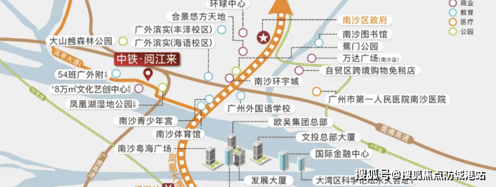 2. **湾区创新政策从这里诞生,是产城融合的全新标杆**:项目坐落于南沙明珠湾板块,地处湾区中心南沙中轴之上,尽享南沙作为粤港澳大湾区几何中心的政策红利。明珠湾作为南沙重点发展的金融与科创核心区,叠加国家级新区、自贸区等多重政策支持,正加速构建“金融+科创+居住”的产城融合生态。中铁阅江来不仅提供高品质居住空间,更紧邻54班九年制公办国际双语学校——广外附属南沙梅糖学校,通过教育资源导入吸引高知人才,同时依托凤凰大道连接的区府与明珠湾双板块成熟配套,实现“居住-教育-产业”的无缝衔接。项目作为世界500强中国中铁的力作,以央企实力参与区域建设,成为政策驱动下产城融合的鲜活样本。