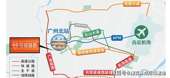 雅居乐花城雅郡坐落于花都汽车城板块,虽然距离地铁9号线花都汽车城站有一定距离,但靠近广州北站,通勤仍然较为便利。此外,项目位于花都区TOD北站新城内,广州北站作为一个亚太TOD综合枢纽,集普铁、高铁、城轨、地铁于一体,共规划了37条轨道线路交汇串联珠三角地区,极大地提升了区域内的交通便捷性。