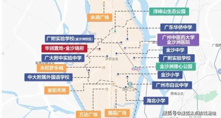 华润置地·金沙瑞府位于金沙洲核心板块,背靠浔峰山脉,前临珠水环绕,形成天然屏障和生态景观资源。金沙洲本身是广州主城西部的重要片区,与荔湾区仅一桥之隔,直线距离珠江新城约14公里。独特的岛屿地理位置赋予项目稀缺性和景观优势,同时远离过度密集的城市喧嚣,实现城市近郊与自然生态的完美平衡。