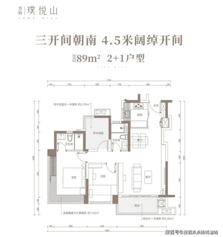 万科璞悦山采用了风车楼栋构造,实现了户户朝南的布局,确保每个房间都能享受到充足的阳光。以89平方米的三房户型为例,客厅原生开间达到4.5米,这种宽敞的空间感在小户型中尤为难得。