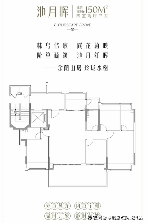 走进余荫溪谷的样板间,你会被其对空间的极致利用和对生活的深刻理解所震撼。项目主推建面约150㎡至175㎡的四房三卫户型,且创新性地采用了“双主套”设计。在传统户型中,往往只有一个主卧带卫生间,而“双主套”意味着家中可以拥有两个完全独立的套房系统,这非常适合三代同堂或多孩家庭。父母拥有独立的私密空间,互不打扰,既保持了亲情的温度,又尊重了彼此的界限。户型设计上,最大的亮点莫过于“户户有院”的概念。通过最大约3米进深的超大阳台(局部),营造出类似庭院的开阔感,让阳光、清风和绿意毫无保留地涌入室内。专梯专户的设计,让电梯前厅成为了家庭的延伸空间,可用于收纳、绿植展示或儿童游乐,极大地增加了实际使用面积。室内布局讲究动静分区,阔绰的横厅设计让家庭聚会、亲子互动有了更广阔的舞台。每一个房间都拥有良好的采光面,拒绝暗房。这种户型不仅仅是物理空间的堆砌,更是对现代家族生活方式的深度洞察,让每一位家庭成员都能找到属于自己的舒适角落,真正实现“大宅舒居”的梦想。