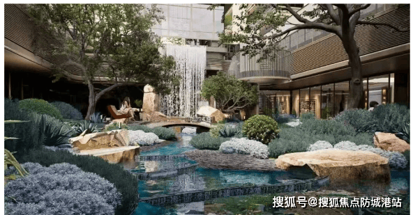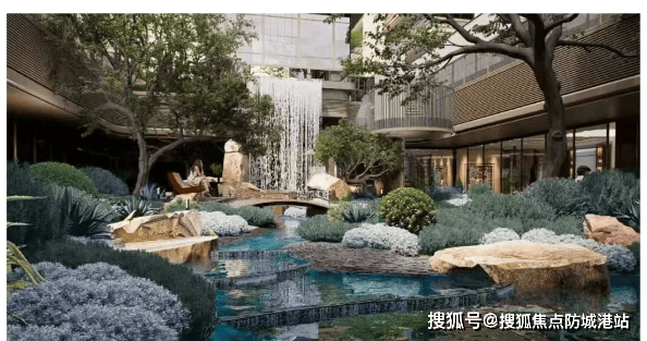 如果说建筑是凝固的音乐,那么余荫溪谷的园林就是流动的诗歌。项目深知“余荫”二字的分量,因此不惜工本,荟萃岭南园林精华,以清代四大名园之一的“余荫山房”为蓝本,进行了一场绝版的复刻与创新。设计师秉持“小中见大、藏景藏意”的造园理念,将千年的岭南文脉注入现代的社区景观之中。归家之路被精心编排为“三进礼序”:一进府门,双府门规制尽显世家威仪;二进院门,双景并置,礼序与自然交融;三进宅门,香柚香橼错落,寓意家宅安康。园区内打造了“造境六园”,从“清芬阶”的红枫映礼,到“可心台”的曲径通幽;从“晓语间”的林下品茶,到“善归庭”的静谧冥想;再到“无事亭”的天伦共享与“吟月池”的悬浮峡谷森境,每一步都是风景,每一景都有故事。特别是飞瀑下沉庭院的设计,利用高差创造出瀑布、叠石、流水交织的动态景观,成为调节家庭气场的秘境。这不仅是一个花园,更是一座露天的岭南文化博物馆,让业主在喧嚣都市中,也能寻得一份“深柳读书堂”般的雅致与宁静,重拾失落的东方居住美学。