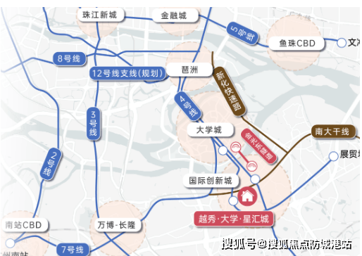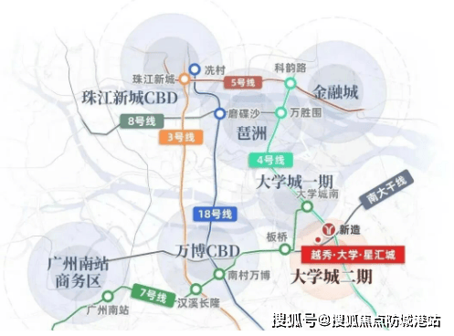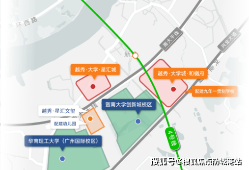 越秀·大学·星汇城位于大学城二期南拓核心区,被纳入“南中国硅谷”发展规划,与琶洲、万博构成科创黄金三角。项目由越秀地产开发,作为其继大学城早期作品后的人文住区2.0升级之作,强调教育、生态与圈层的融合。