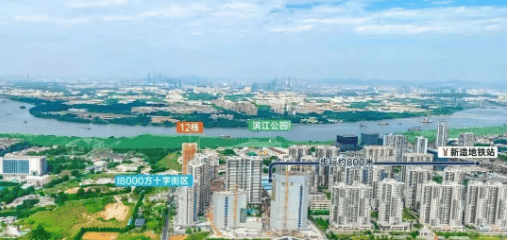 北面约600米规划约65万㎡滨江公园(面积超花城广场),未来将成为区域生态核心;