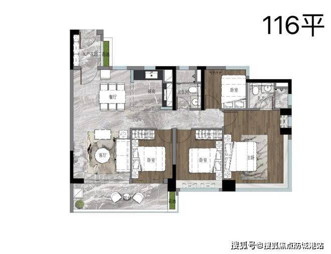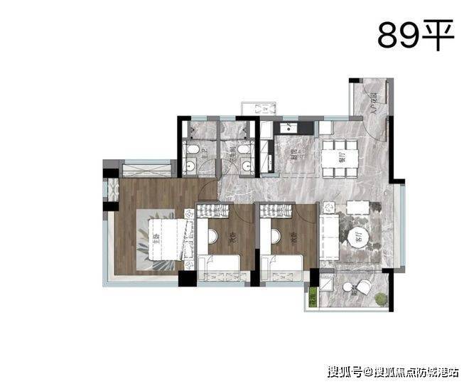 比如建面约 89㎡三房户型,做到三开间朝南、南北通透、全明格局,主卧套间设计,客厅连通超大阳台,没有任何空间浪费,使用率接近 100%,比同面积段户型多享约 10-15㎡实用空间;建面约 116㎡四房户型,四开间朝南,双阳台设计,动静分区明确,满足三代同堂居住需求,空间尺度感堪比市面上 130㎡户型。