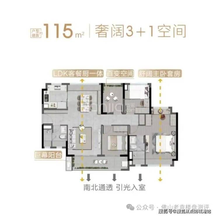 全南向设计:绝大多数户型采用全南向布局,保证了充足的采光和通风。LDKB(客厅、餐厅、厨房、阳台)一体化设计,让空间尺度感大幅提升。