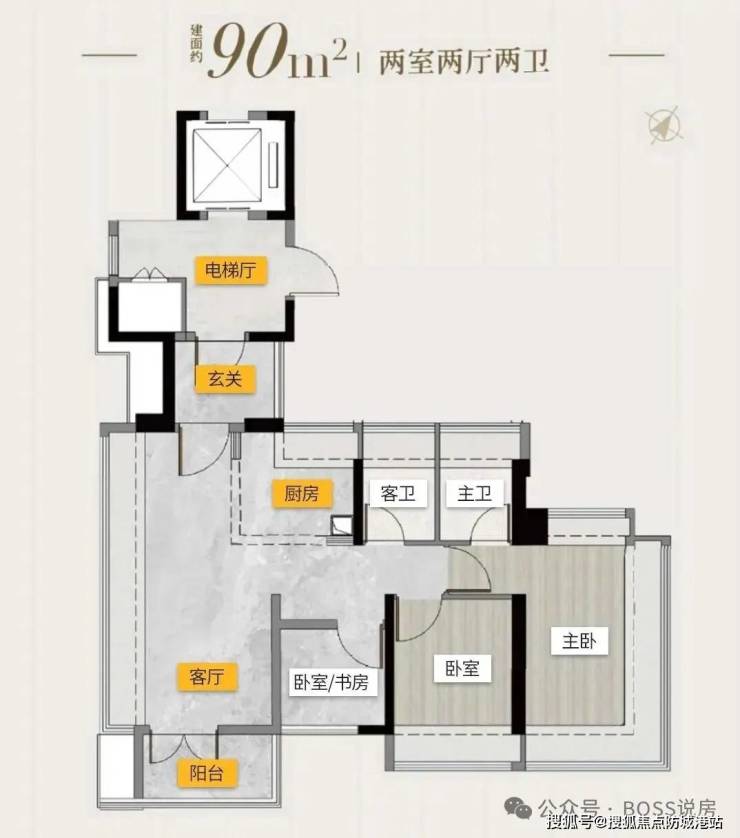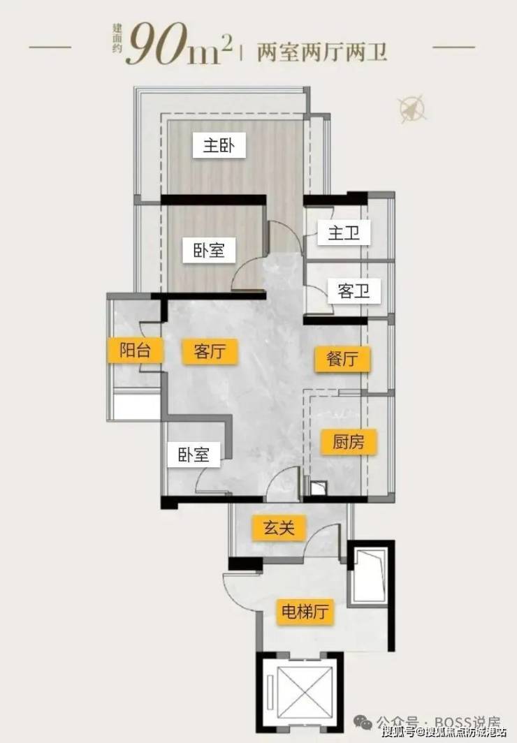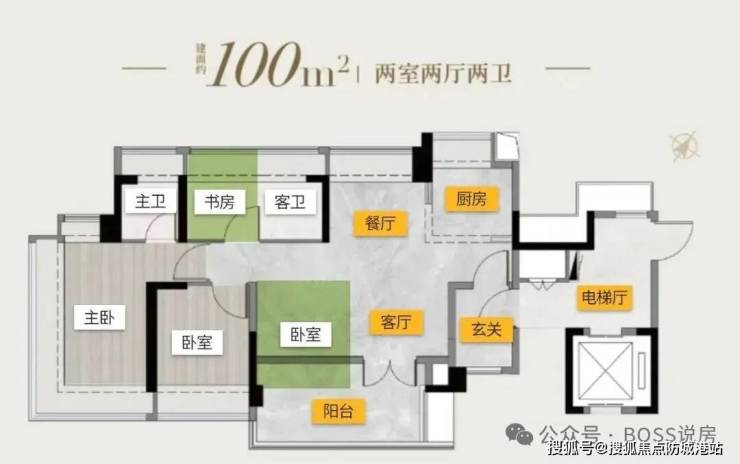 相比 90㎡户型,100㎡户型空间更宽敞、舒适度升级,总价仅需 480 万起,适合三口之家或四口之家。全南向设计,客厅阳台面宽更大,采光通风更佳;主卧套间带独立卫浴 + 南向飘窗,居住私密性强;两间次卧空间充足,可满足孩子成长、老人居住需求;公共卫生间干湿分离,方便日常使用;得房率约 82%,空间利用率高,无浪费面积,兼顾性价比与舒适度。