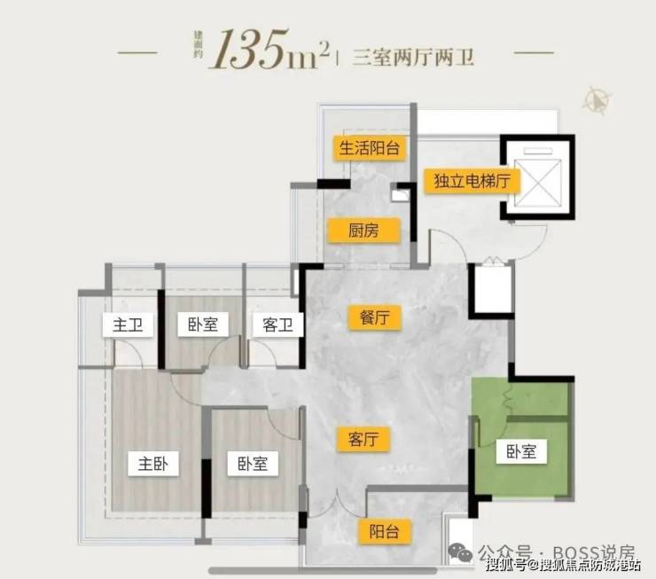 这款户型是天河主城稀缺低总价三房,总价 450 万起,刚需小家庭、首改夫妻都能轻松入手。户型方正全南、动静分区,客厅带南向观景阳台,采光充足、视野开阔;主卧套间设计,带独立飘窗,私密舒适;两间次卧空间规整,可做儿童房、书房或老人房,功能灵活;U 型厨房紧邻餐厅,动线流畅、利用率高;得房率约 80%,无走廊浪费面积,小面积也能实现舒适居住,是天河刚需上车的 “最优解”。