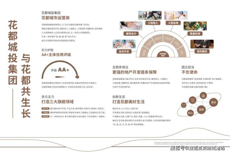 【品牌力量】广州花都城市建设投资集团,最懂花都的城市运营商集团目前拥有投资开发、工程建设、城市服务三大主力业态,涉及到12家重点的二级全资子公司,重点包括开发、建筑、设计、监理、检测、服务等 6大开发板块的产业链条,从投资、到开发建设、质量检测等,都是政府及国企的保障。花都城投以优秀的业绩及健康的业务结构,荣获AA+主体信用评级。