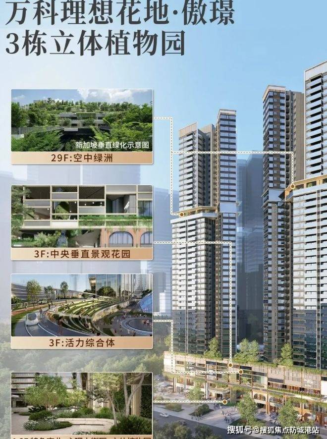 万科・理想花地・傲璟总建面约 16 万㎡ ,共 4 栋楼,约 844 套住宅。楼栋高低错落,4 - 28 层是 2T6,30 - 44 层是 2T5 。户型面积在约 74 - 186㎡之间。1 - 2 层是商业街区加立体植物园,3 层是体育会所,有篮球场、羽毛球场这些运动空间,30 层还有空中会所。物业服务也升级了,住在这儿,生活舒适又有品质,方方面面都给您安排得妥妥当当。