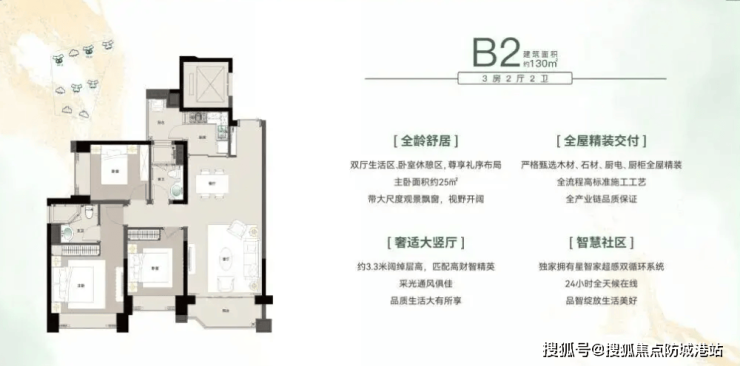 豪装单价 4-5 万 /㎡,南北对流双阳台,动静分区明确,适合三代同堂;