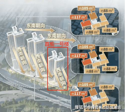 主力户型:主推建面约88-105-117平方米四房,全部户型均为南向设计,确保良好的采光和通风。