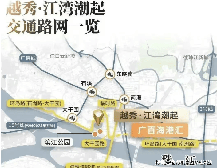 生活的品质,很大程度上取决于周边配套的完善度与便捷性,越秀天荟江湾凭借其优越的区位与丰富的配套规划,为居者构建了高效、便捷的全维生活圈,让繁华与舒适触手可及。在交通出行上,项目距离在建的10号线大干围站直线仅650米,预计年内通车后,可快速直达中大、五羊邨、体育西等城市核心商圈,无论是通勤上班还是休闲购物,都十分便捷;自驾出行方面,北侧一横路、南侧环岛路可快速连接广州环城高速,海珠湾隧道预计今年开通后,开车到南站仅需15分钟,轻松实现跨区出行;环岛路作为海珠重点建设项目,官方计划年内贯通临时道路,未来全线贯通后,不仅能激活海珠“产-商-居”内循环,还能为业主日常跑步健身提供优质路线。在商业配套上,广百海港城已于2023年12月封顶,预计今年底正式开业,作为广州首个大型滨江海港城,集商务办公、休闲购物、酒店于一体,业主在家门口就能享受奢侈品牌购物、高端餐饮、休闲娱乐等服务,无需远行即可满足多元消费需求。在休闲生活方面,项目步行约300米可直达1.7万平的滨江公园,茶余饭后或周末时光,业主可在江边吹风散步、观赏船只与日落,感受滨江生活的惬意;南部江面规划建设的游艇码头,未来还能体验类似珠江夜游的休闲项目,丰富业余生活。此外,项目周边还有少年宫、露天游泳池、社区服务中心等十几处共建配套,日常的文化娱乐、健身锻炼、生活服务需求都能轻松满足。越秀天荟江湾以全维完善的配套,让居者无需在便捷与品质之间取舍,轻松享受高效舒适的城市生活。