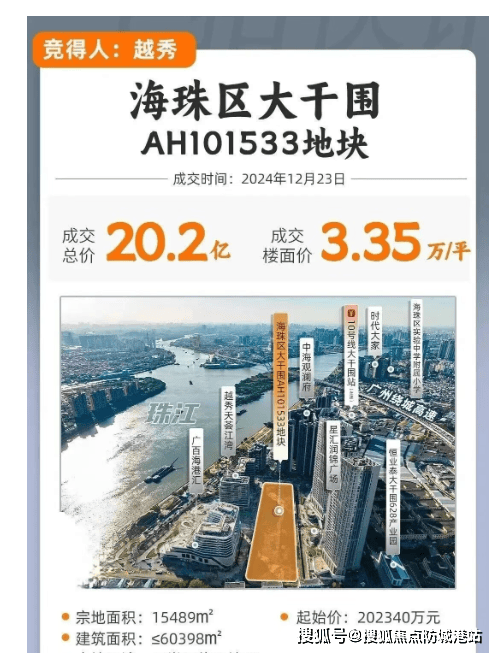 越秀江湾潮起承载着诸多亮点与期待。2024年12月23日,越秀以20.23亿元拿下海珠大干围地块,楼面价33501元/㎡ 。该地块原为商业用地,经一系列调规、收储与挂牌出让,最终尘埃落定。其独特之处在于,它原属于越秀·天荟江湾项目内部组团,夹在AB与EF组团之间,距离珠江后航道仅约200米,且南向望江,这一稀缺江景资源为项目奠定了非凡价值基础。