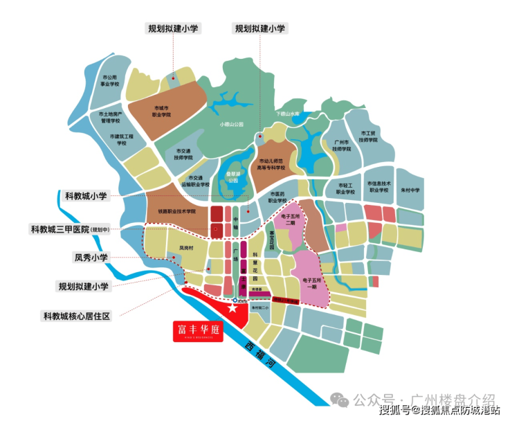 富丰华庭位于增城区朱村街,地处广州科教城核心区域,而广州科教城是万亿级湾区科创走廊核芯的千亿级项目,总投资1800亿,规划打造为国际一流教育聚集区和职业教育高地。