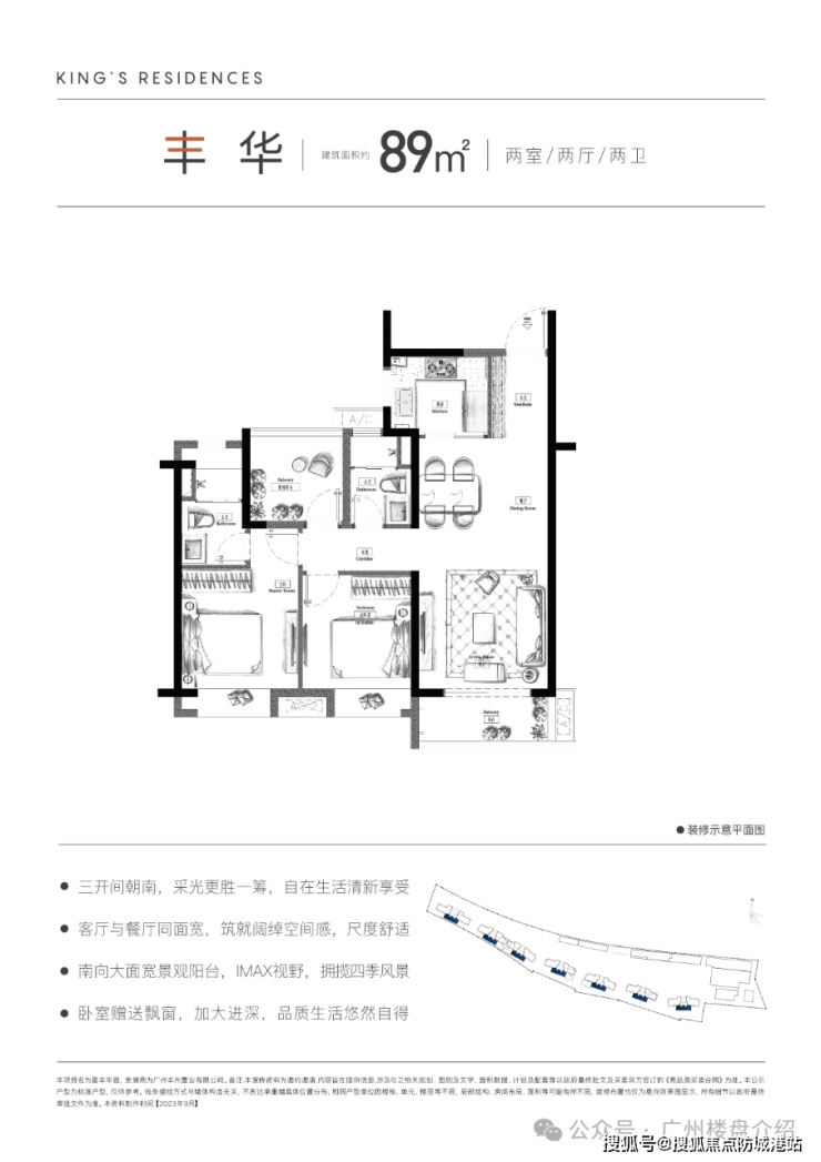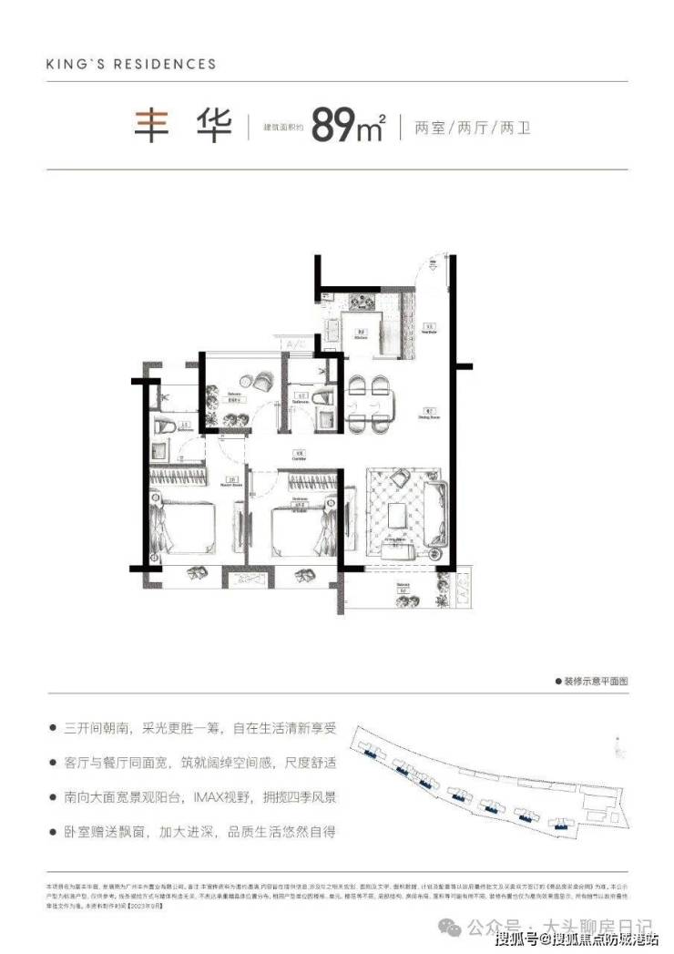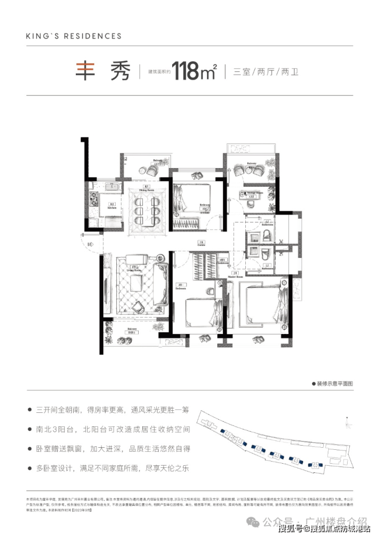 2. 户型优势:89-118㎡精装三四房,户户朝南,超高使用率