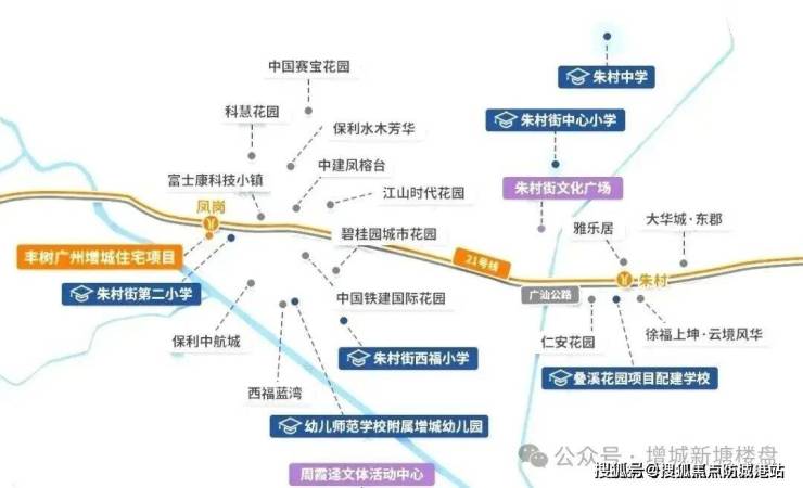 答:周边教育资源丰富,有24班公立小学及朱村第二小学,距离较近,孩子上学便捷。整个科教城内规划有11所中小学,包含7所小学、3所中学、1所九年一贯制学校,还计划引进广州外国语学校增城校区,可近享公立小初高15年全龄教育配套。