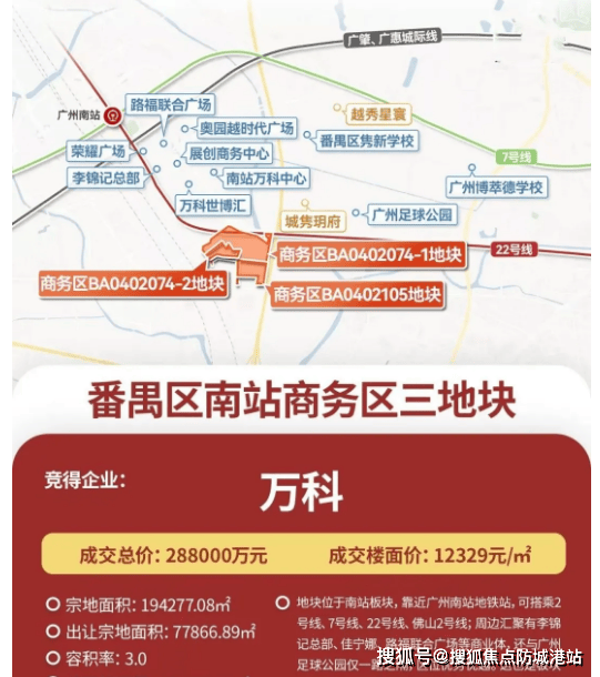 【拿地时间】2024年12月17日,由万科以28.8亿元竞得南站三块宅地,时隔四年再度加仓南站,开启南站3.0居住时代新篇章,楼面价约1.2万+/平,性价比优势凸显[1]。