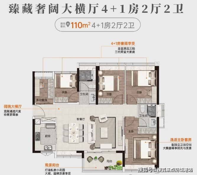 110㎡五房:三代同堂理想选择,私家花园感,性价比远超同类产品。