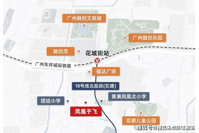 交通方面,项目距离地铁18号线及穗莞深城际铁路的花城街站直线距离仅约800米,步行可达。18号线作为广州南北向高速地铁大动脉,设计时速达160公里,从花城街站出发,4站即可抵达白云新城,8站直达珠江新城,高效连接广州核心商务区。同时,穗莞深城际铁路进一步强化了项目与东莞、深圳等大湾区城市的联动能力,为跨城通勤或商务出行提供极大便利。此外,周边路网发达,通过迎宾大道、机场高速等主干道可快速接入广州北站、白云国际机场等重要交通枢纽,构建起立体化、多维度的出行体系。