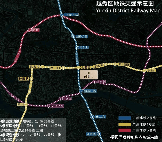 公园前君熙府的交通便利性十分突出,拥有多维交通网络。项目距离地铁 1/2 号线交汇点公园前站约 400 米,步行轻松可达,通过地铁可快速畅达广州各区,无论是前往天河的商务中心,还是海珠的休闲区域,都极为便捷。