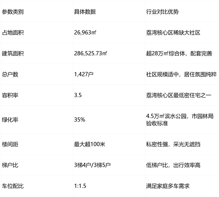 容积率3.5:远低于荔湾核心区平均5.0的容积率,居住舒适度更高;