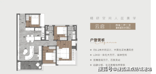 建面约105㎡四房两厅两卫:刚改优选户型,做到“小三房变四房”,满足家庭人口增多后的居住需求。户型采用竖厅设计,动静分区明确,客厅与餐厅相连,动线流畅;厨房预留充足操作空间,搭配生活阳台,储物与晾晒需求兼顾;主卧套间设计,配备全景飘窗,采光效果极佳,其余卧室空间充足,适配全龄段居住。