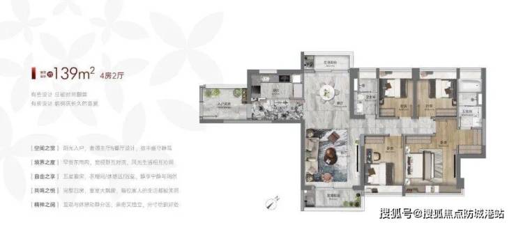 第六种主力户型:建面约139㎡四房两卫,该户型为项目顶级高端改善户型,贴合高端改善人群、多人口大家庭的居住需求与预算,总价550~580万左右。该户型空间宽敞大气,进一步优化空间布局,增加了公共区域与卧室的空间尺度,提升居住舒适度与尊崇感,同时保留江景视野、南北通透等核心优势,实用性与品质感兼具,彰显高端人居质感。