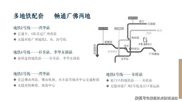 项目位于桂澜路南延线末端 属于桂城南端及三龙湾起步核心区域 地处佛山南海千灯湖向南发展的过渡带 拥有优越的地段价值与发展前景 区域内已规划多条地铁线路 项目与地铁广佛线与佛山地铁二号线形成联动 通达广州荔湾 越秀 天河等核心区域 车程约三十分钟内可直达琶洲及珠江新城 同时接驳东平水道城市主干道 可迅速前往桂城金融高新区 季华路科技商务区及陈村枢纽站 不仅自驾出行顺畅 地铁交通也构成高频率的城市通勤系统 是一座兼顾生态与便捷的滨水城市人居新典范