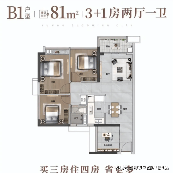 品实云湖花城在售户型覆盖70-141㎡,从刚需三房到改善五房,全面适配单身青年、新婚夫妻、三口之家、多孩家庭等不同阶段的居住需求,且所有户型均为精装交付,全系升级配置品牌新风系统、智能马桶盖、洗碗机等实用设施,让业主实现"拎包入住"。