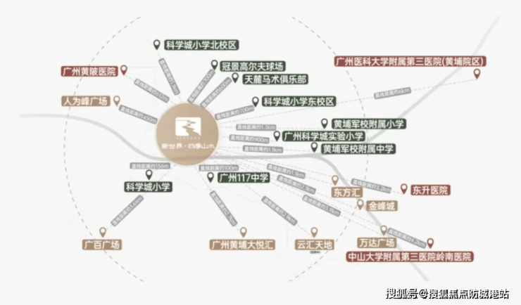 新世界四季山水位于科学城核心区“黄金三角”(地铁21号线神舟路站、科学广场、玉树公园),周边聚集LG、多益网络、小鹏汽车等3000+家科技企业,高净值人群密度达2.8万人/平方公里(数据来源:黄埔区2025年统计年鉴)。