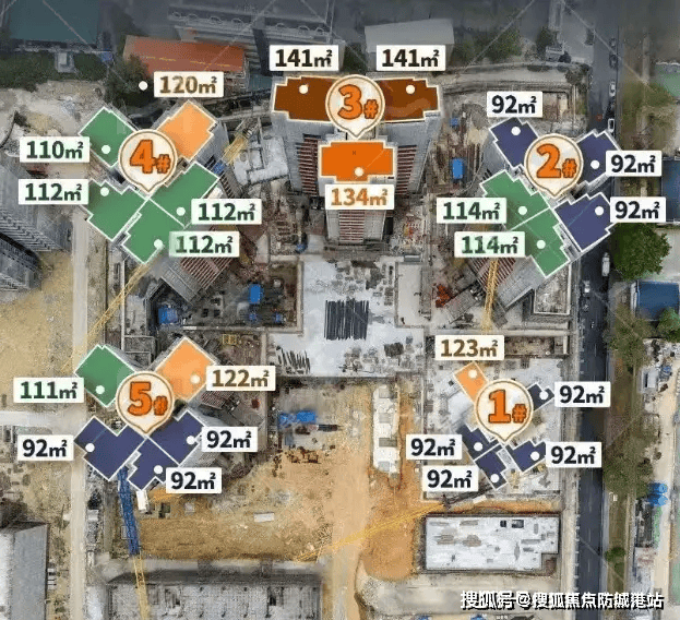 2. 户型:建面约120-180㎡四至五房,全南向+高得房率