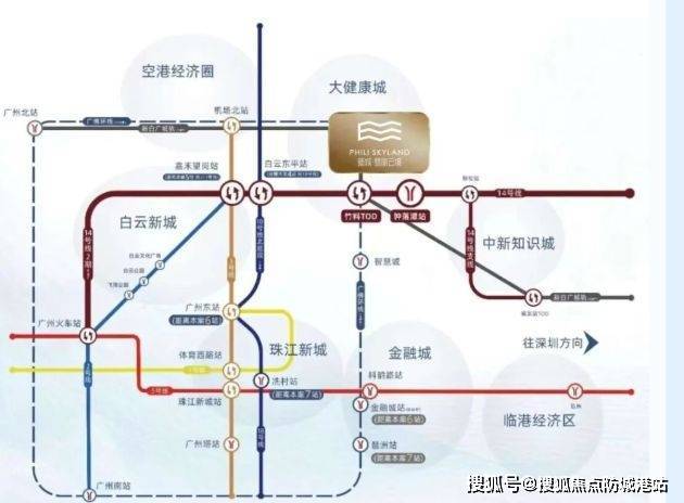 交通方面优势明显。距离地铁 14 号线钟落潭站大概 1000 米,5 站到嘉禾望岗,换乘 2、3 号线能直通白云新城,畅达广州全城。地铁站有指示牌,还有公交车一站直达项目,很方便。自驾的话,华南快速、京港澳高速等多条高速路环绕,畅行全城,纵横大湾区。18 号线北延段在建,未来到白云东平站与 14 号线交汇,换乘 7 站到冼村。还有广佛环线(预计 2025 年通车)和新白广城轨(在建中),3 站天河智慧城,1 站白云机场,交通网络发达。