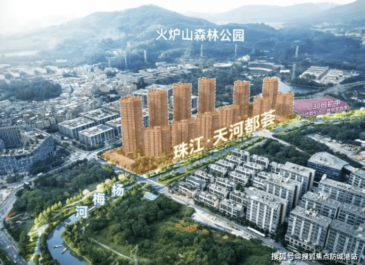 生态配套:项目紧邻杨梅河,西北侧瞰湖泊,东侧步行可达大观湿地公园,远眺火炉山森林公园,政府投资升级杨梅河滨河景观带,打造都市碧道,形成 “山 - 湖 - 河 - 园” 四重生态景观,在天河核心区实现生态宜居。